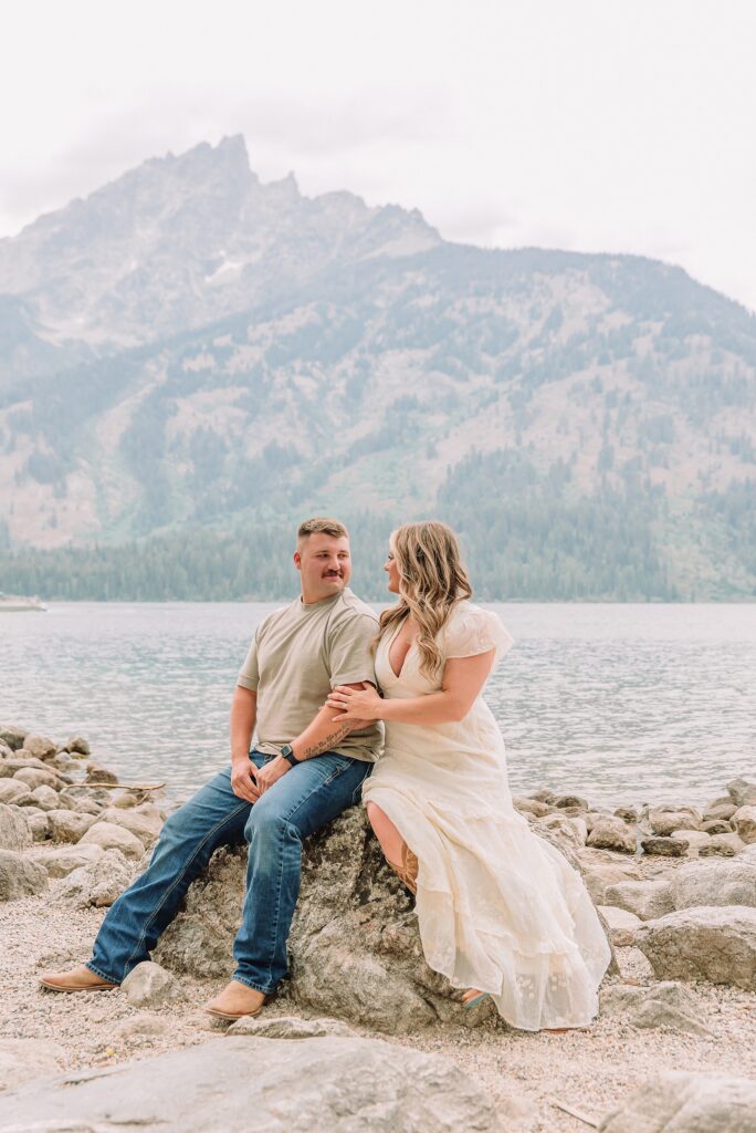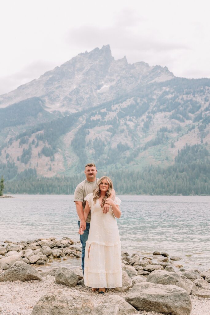 When we started planning this extended summer engagement session, I was excited to hear how much diversity they wanted in their locations. Each place they chose gave them a different backdrop. This Jenny Lake shoreline offers a wide open view of Teewinot and the beautiful water. This location is best in the late summer and fall when the waterline has receded a bit.