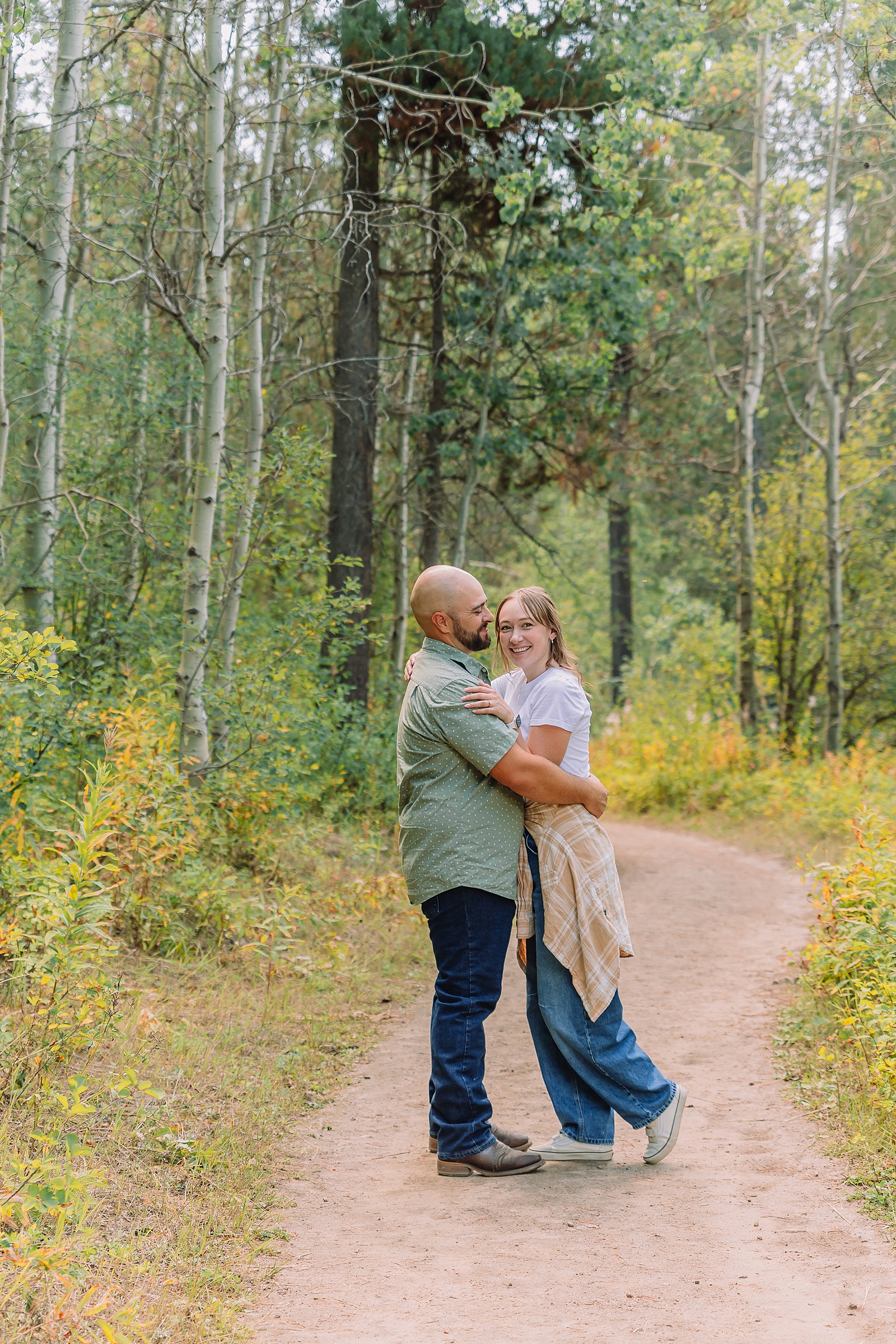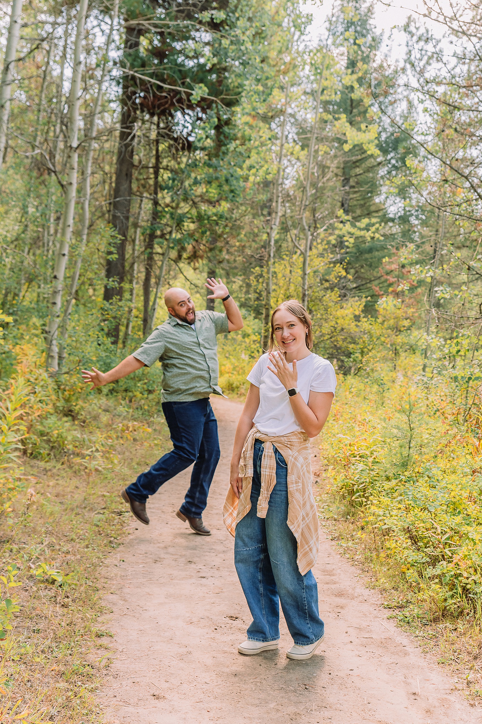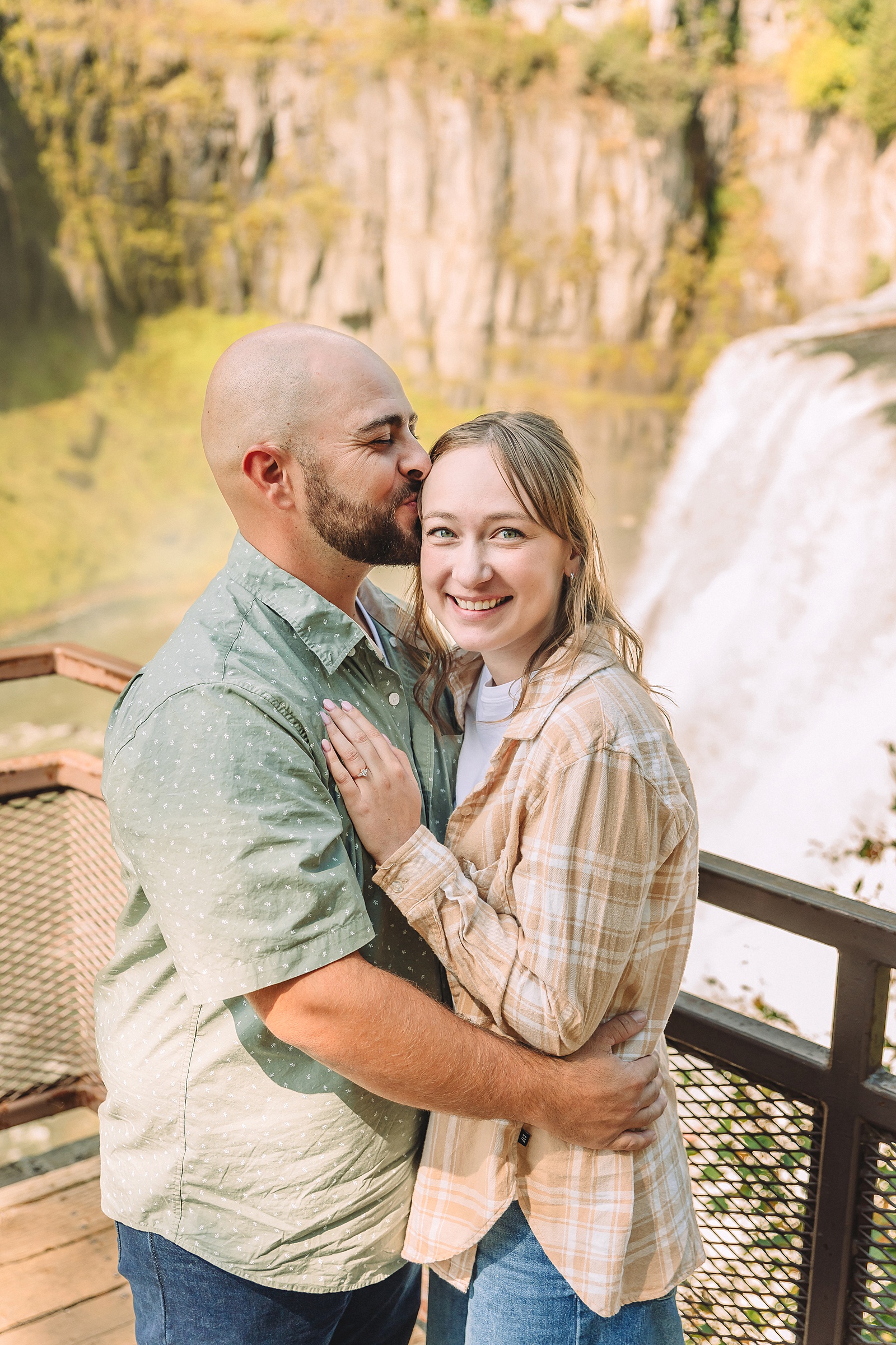 We captured Mesa Falls Proposal Photos on the boardwalk near the cascading water, then moved to the nearby nature trail for more intimate shots. The combination of dramatic waterfall views and that unexpected rainbow made these images truly unforgettable.