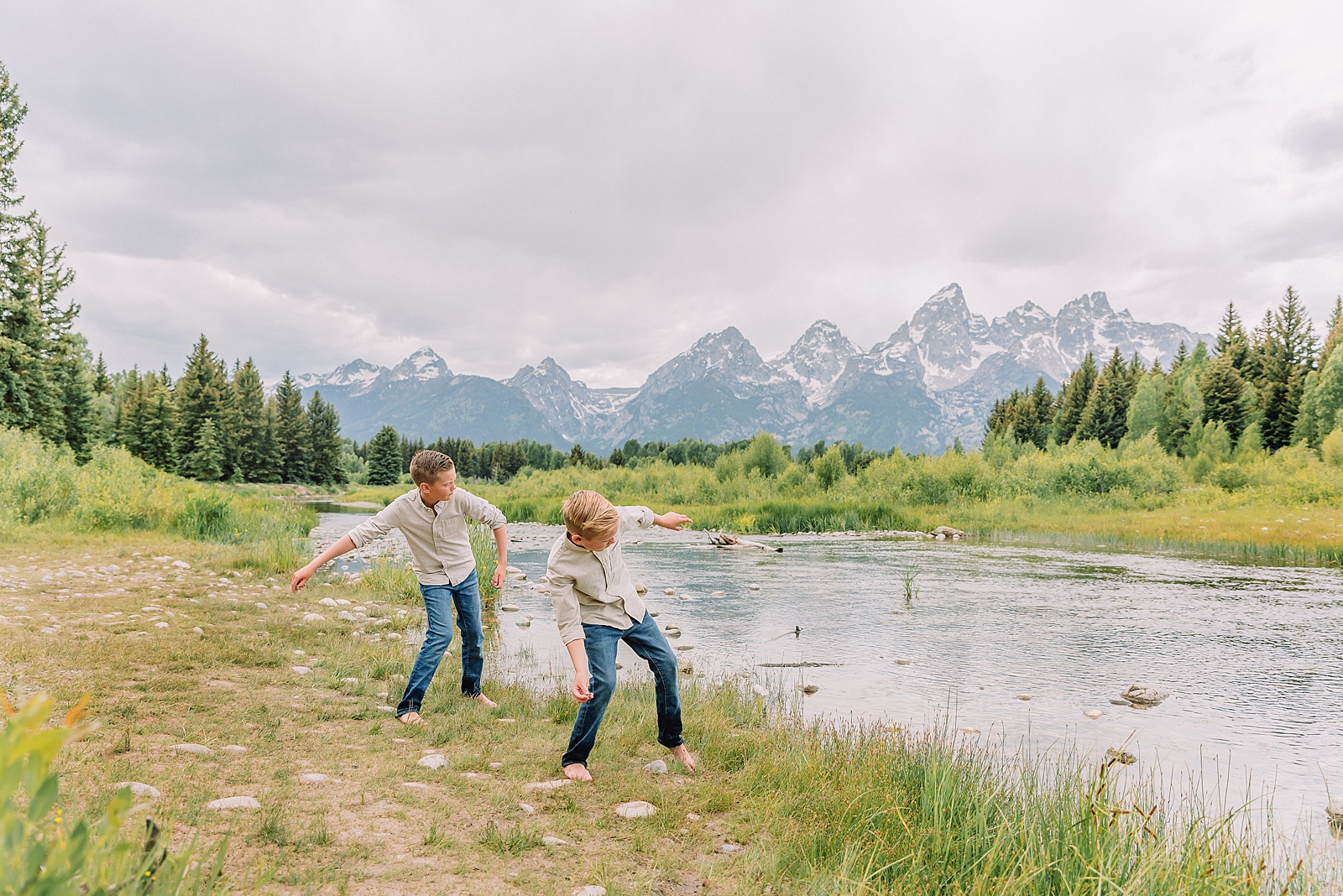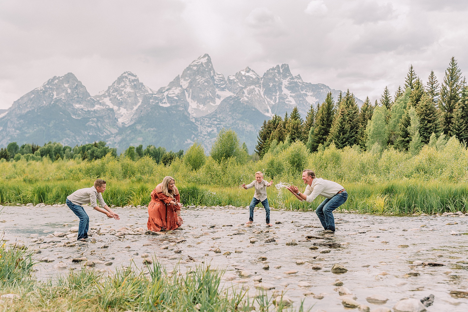 At the session’s end, they all dipped their feet in the water and even had a little water fight together before skipping rocks and doing another handful of photos. These candid moments often become the most cherished images from Grand Teton family photos.