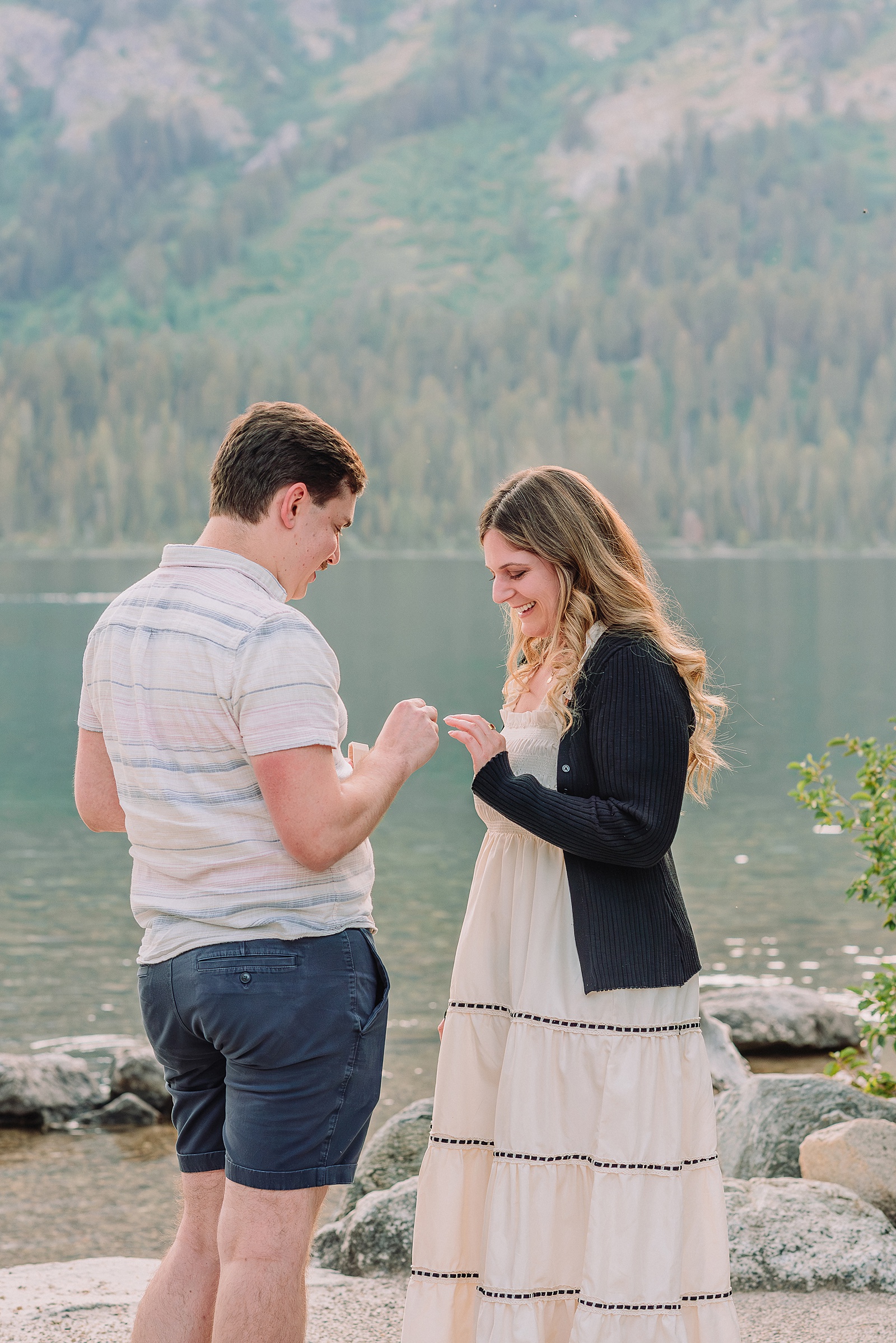 Russell absolutely knocked this proposal out of the park! The combination of thoughtful planning, stunning location, and genuine emotion created an unforgettable experience. Jenny Lake’s lakeside views provided the romantic atmosphere every couple dreams of for this milestone moment.