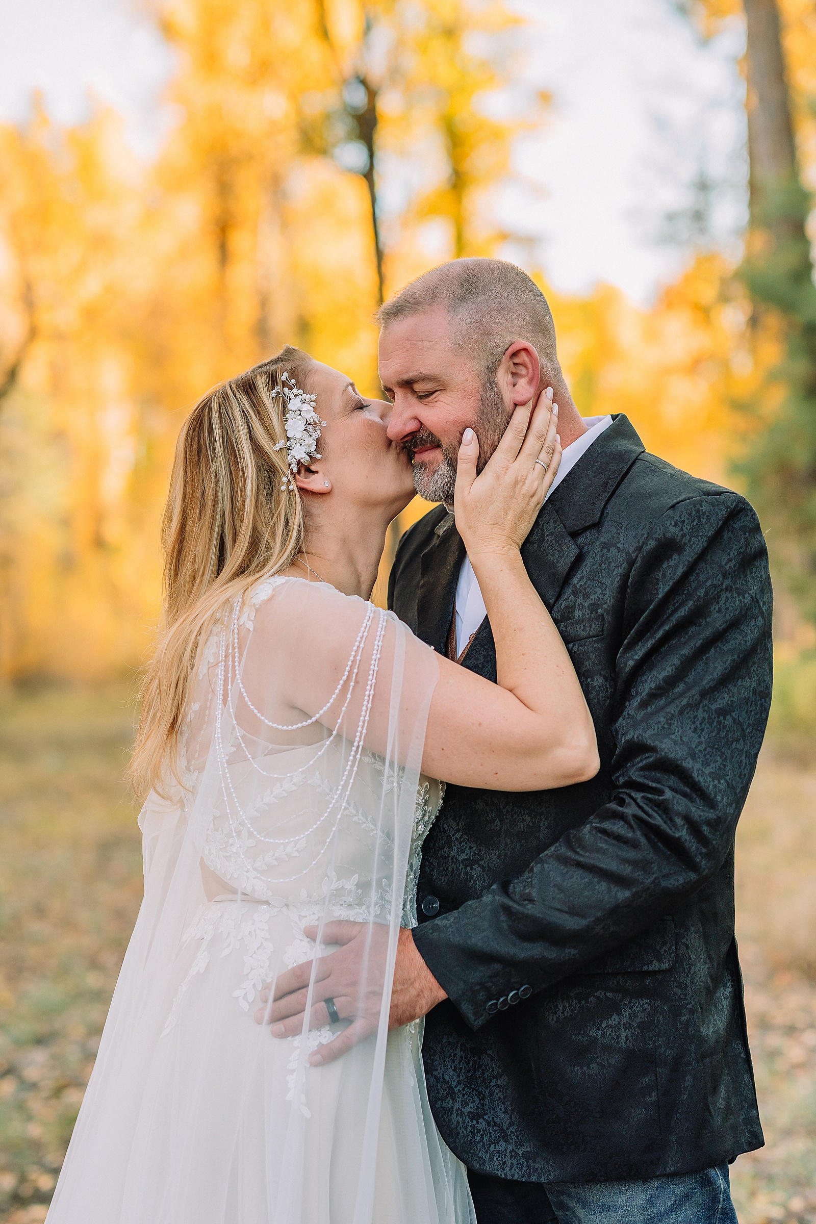 Tracy and Randy celebrated their marriage at home surrounded by loved ones, then headed to Jackson Hole for their honeymoon. They wanted to commemorate their marriage with stunning portraits in the mountains. We met at Schwabacher Landing for their formal wedding attire session, and the results were absolutely magical.